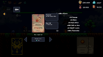 Not a fan of being forced to use at least 1 basic attack card. Any card that deals damage should be allowed as last card. Even better, just make a fist or wooden sword card that is free. (Wanted to use shields only. Also the deal damage based on missing health as the only source of damage. Having health reset each battle is an issue; was going to remove all damage cards to get beaten up as much as possible then shred the enemy for 500 max? missing health x multiplier.