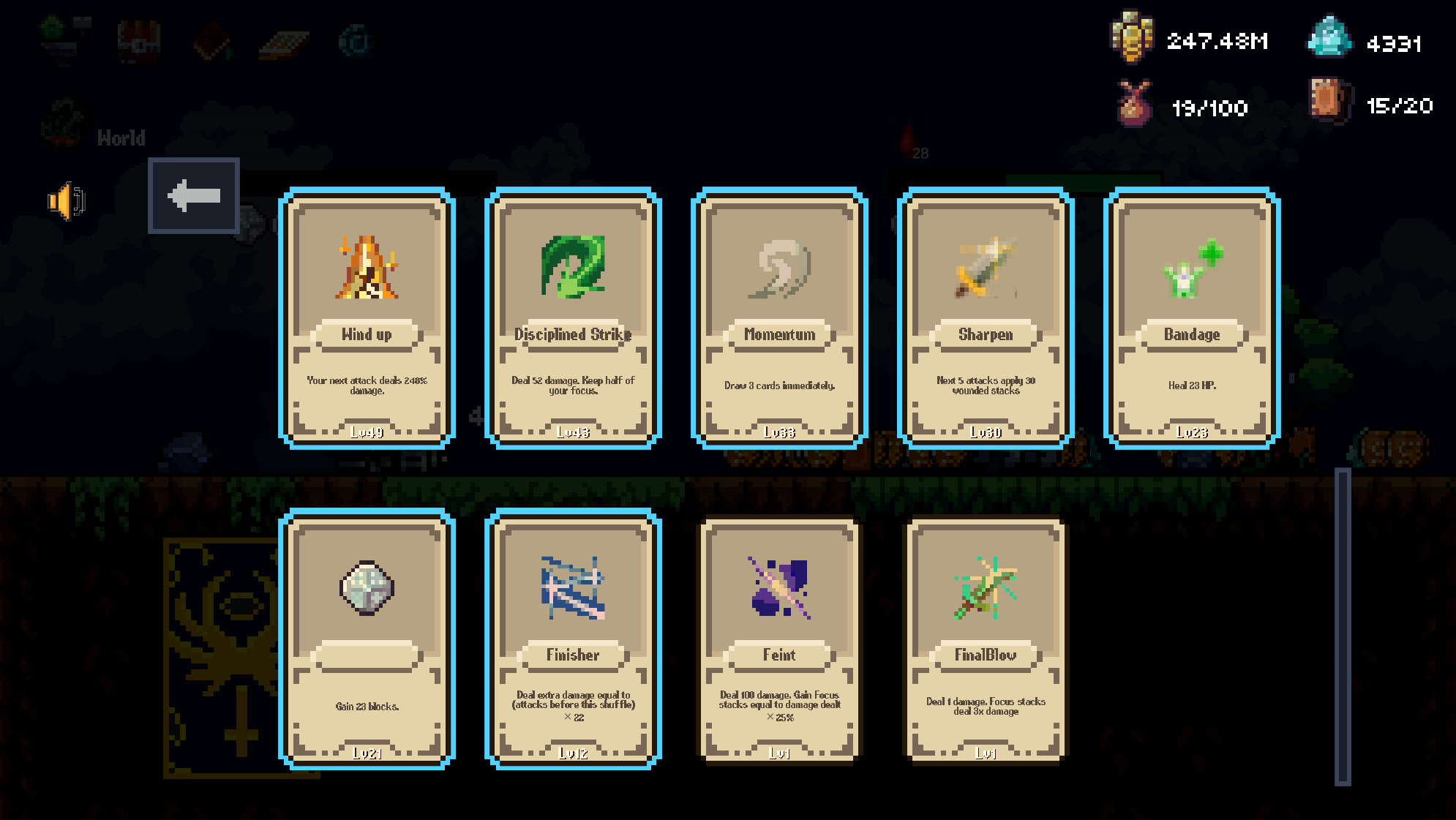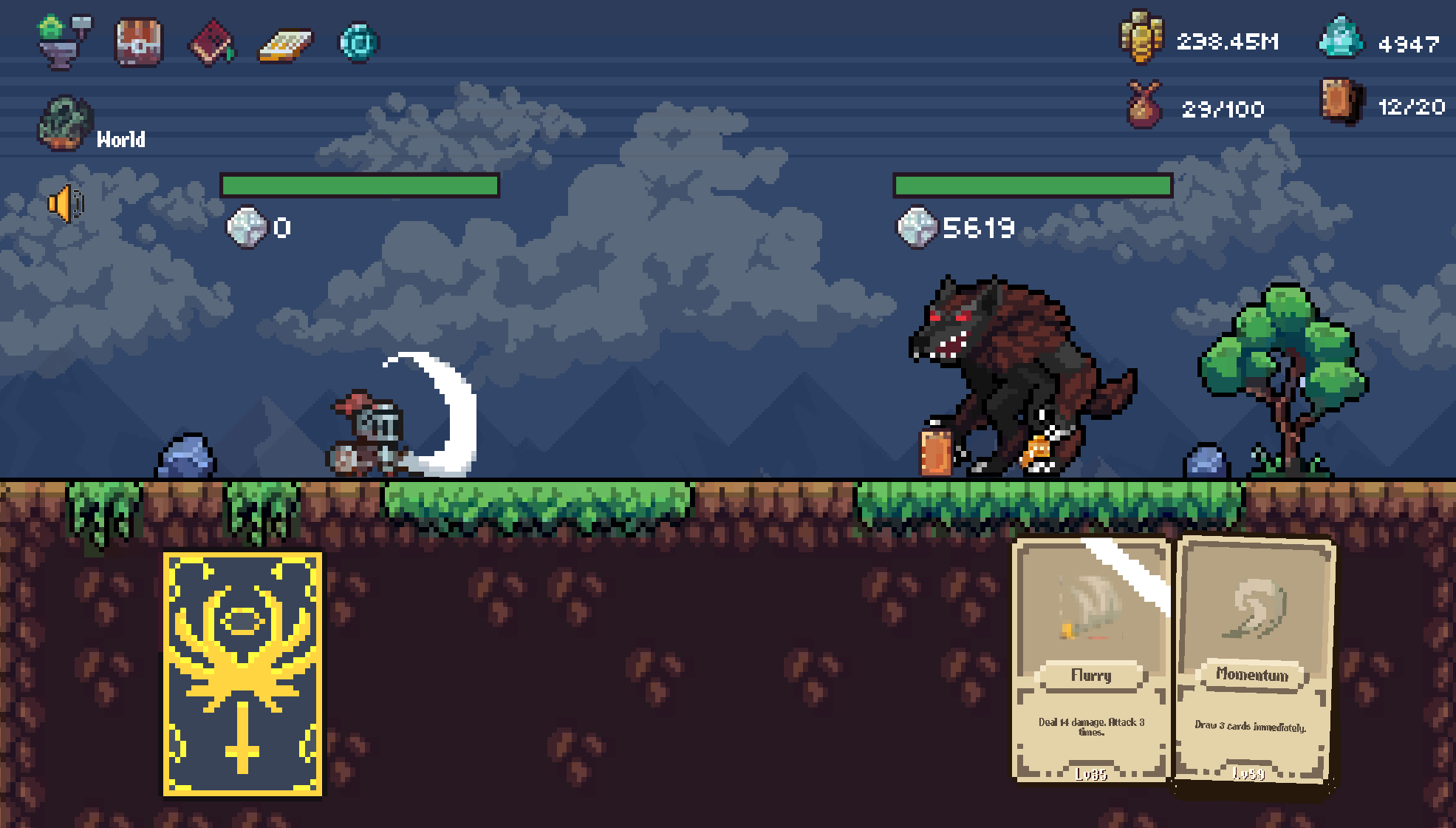 Build your deck, experiment with crazy combos, and see how far your knight can go!